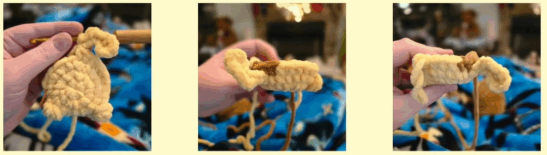 Rnd 4: 2 sc, Bob, 5 sc, Bob, 9 sc, Tail, 6 sc