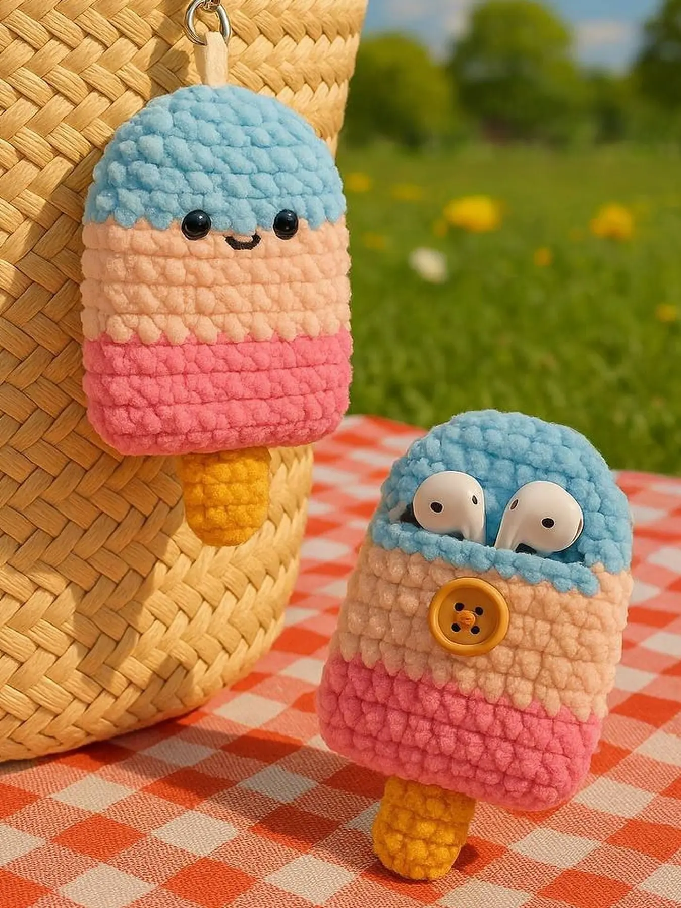 Create a charming handmade ice cream plush to brighten up your summer crafts or play kitchen, or you can use it as a keychain or AirPods holder.