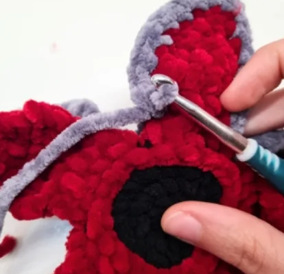 You will start with the head, and then comes the most interesting part – the flower head. It is made in two parts (red and grey) that you will join together. After that, you will crochet the body, arms, and legs.