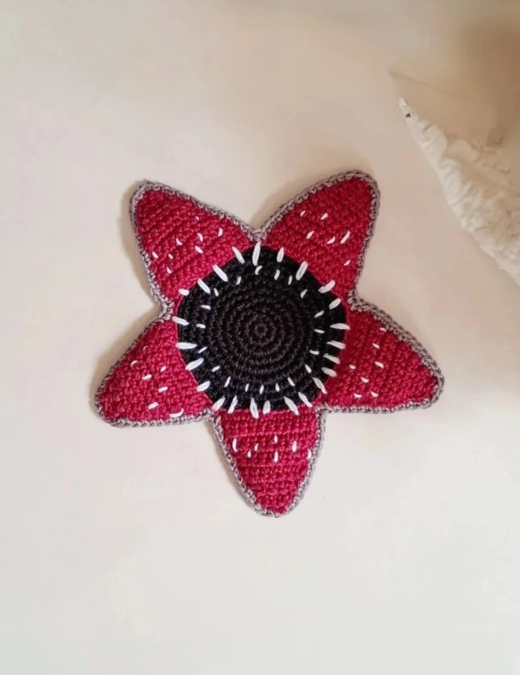 The series is still trending all over the world, so we are here again with a pattern of the main symbol from the Stranger Things universe. This time it’s a Demogorgon made as a coaster for your mug.